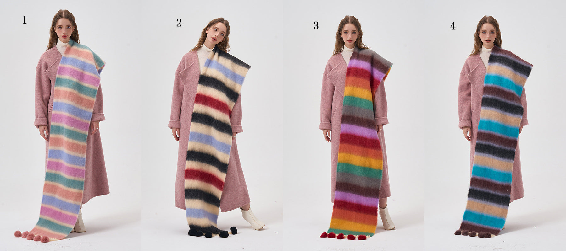 2023-08-14 Bufanda de invierno con bolas de felpa a rayas de colores