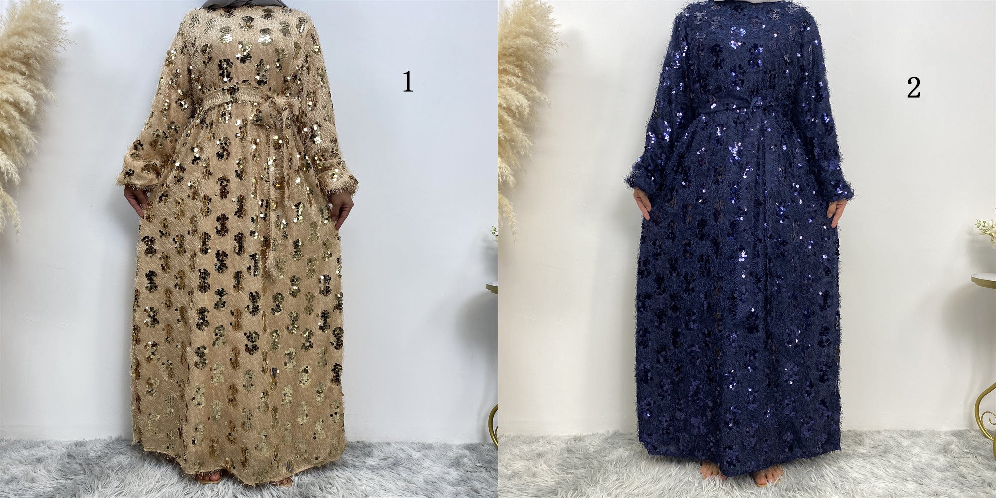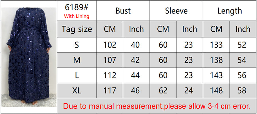 6189 vestido abaya musulmán con borlas de lentejuelas