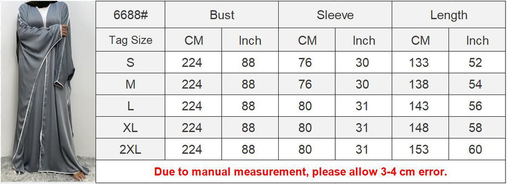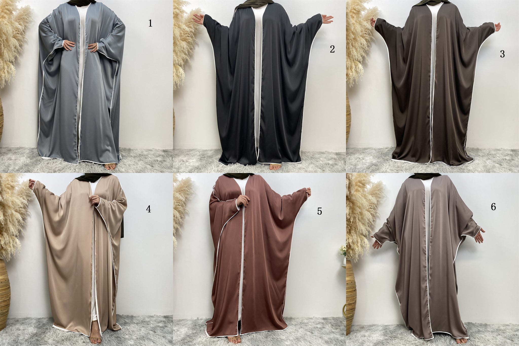 6688 cárdigan abaya musulmán de satén vestido con manga de murciélago