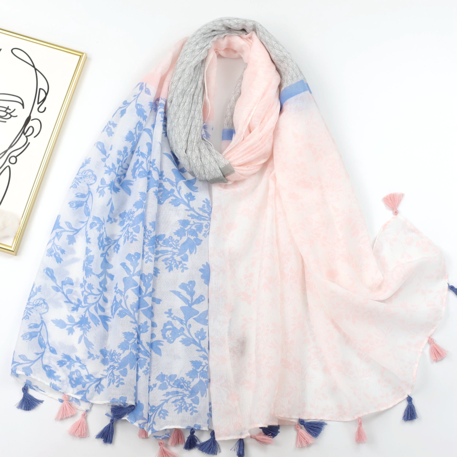 JY230506 Bufanda de gasa con estampado de hojas y flores