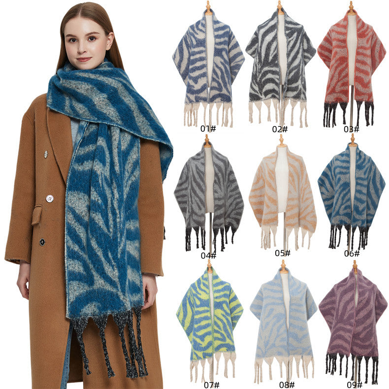 Bufanda de invierno con rayas de cebra y hilo de bucle JH-TH19