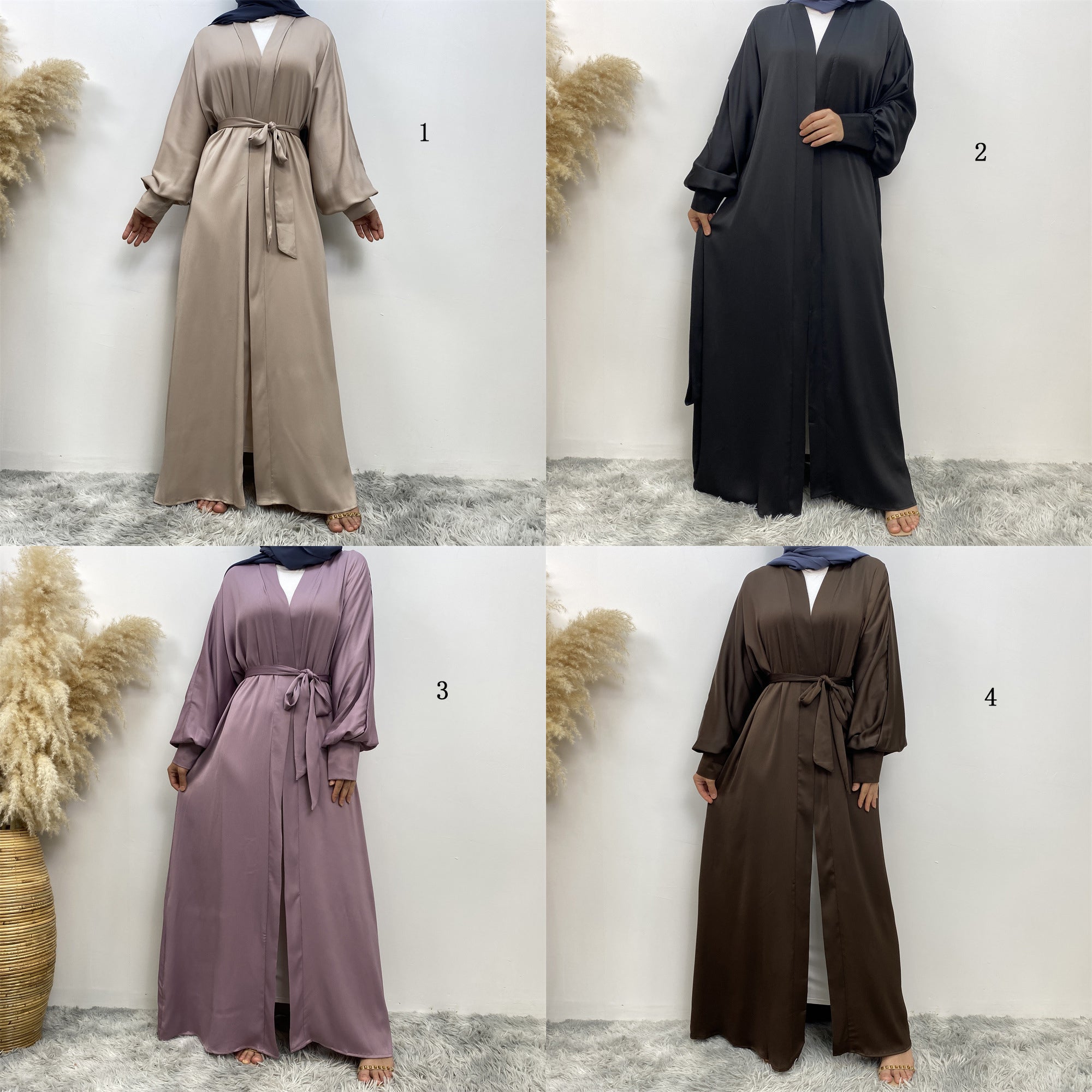 Vestido tipo cárdigan abaya musulmán liso 1975