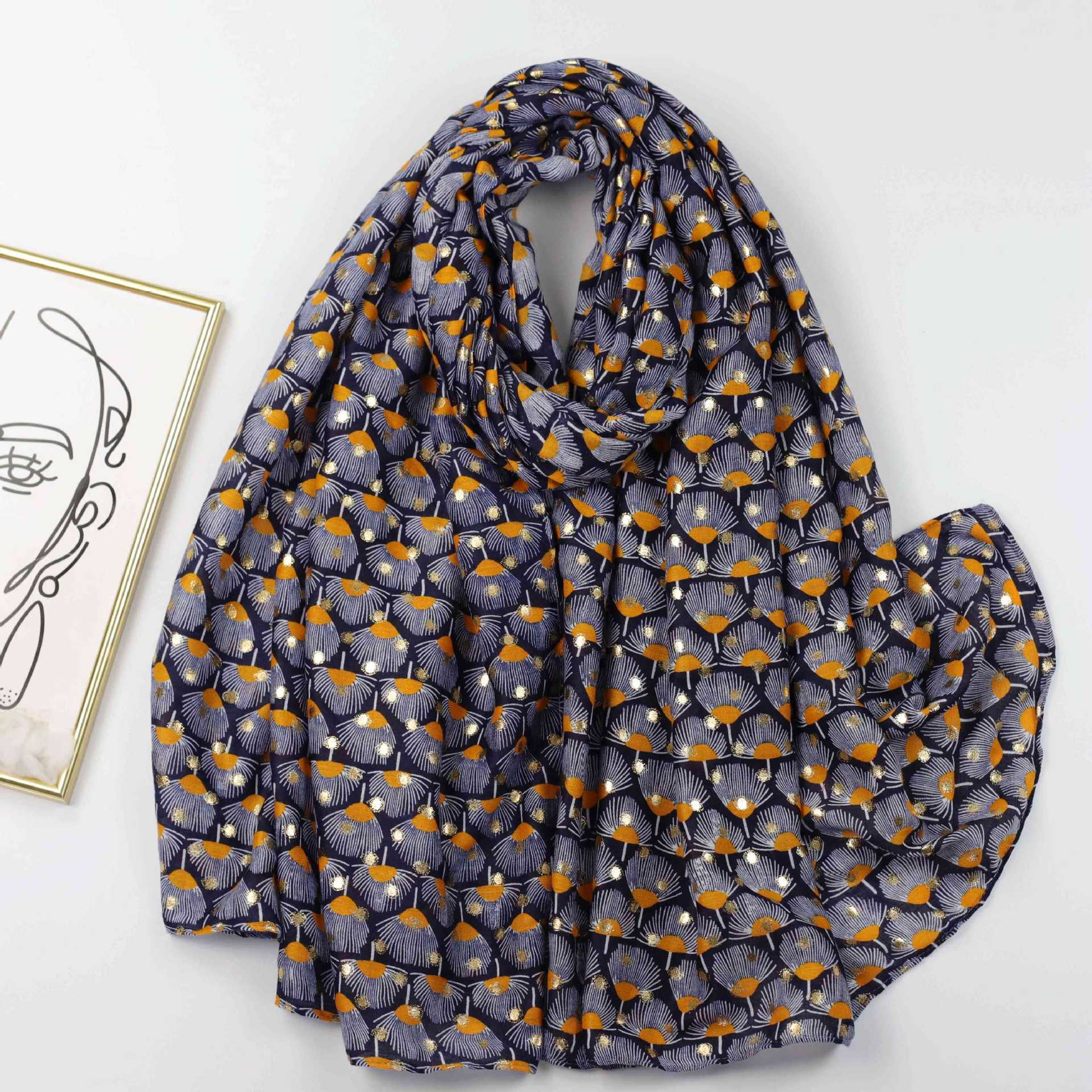 JY230815 Bufanda estampada en caliente con estampado de abanico de pluma pequeña