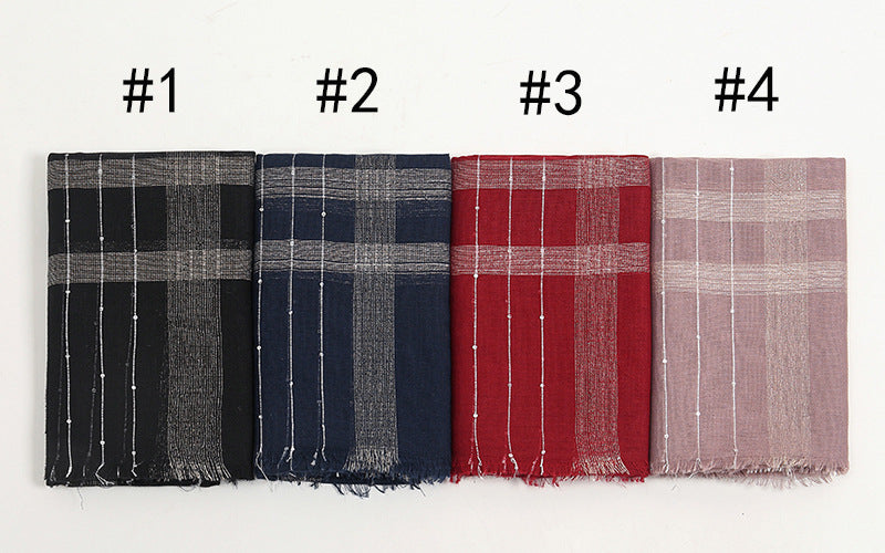 Bufanda hijab con borlas y lentejuelas a rayas VS535