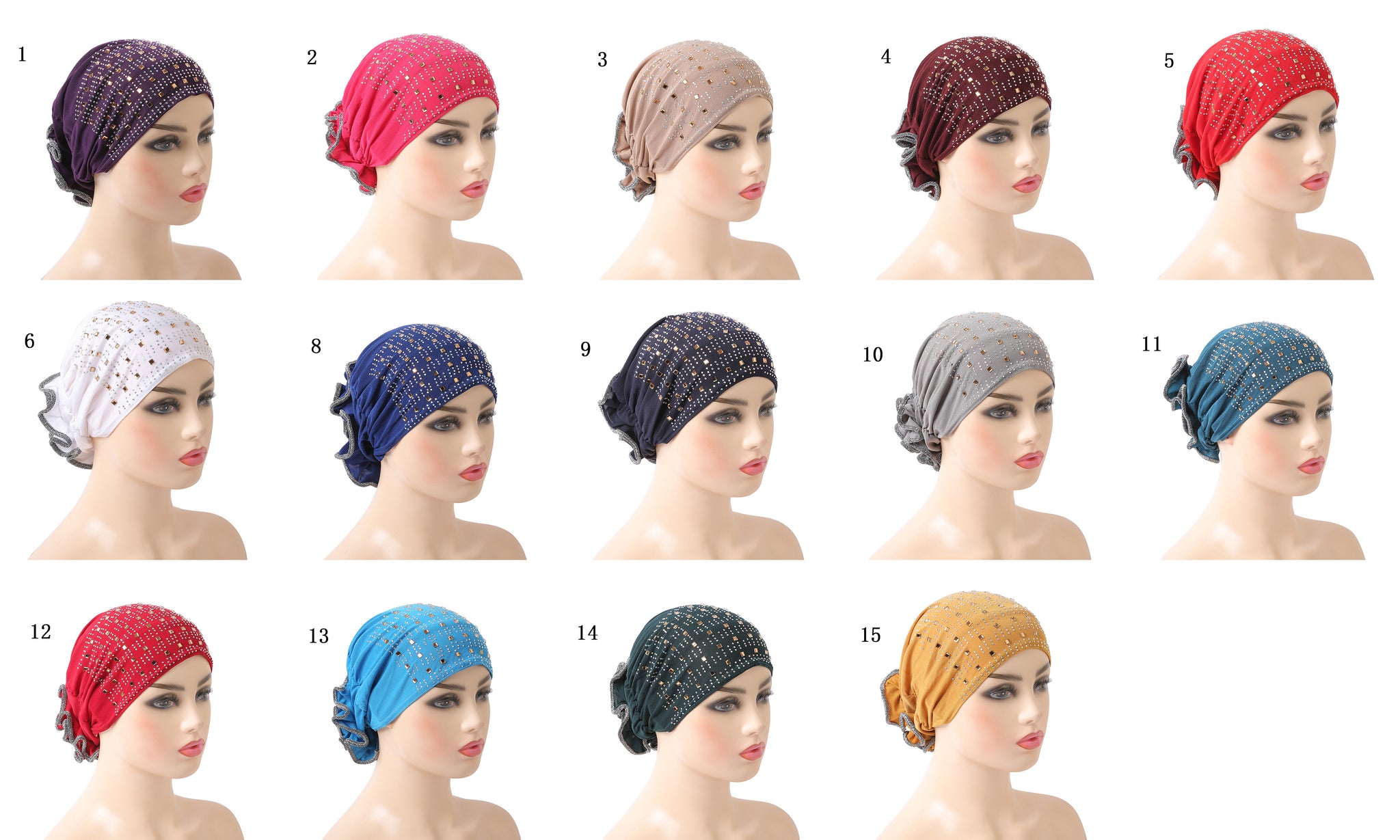 H008 hot stamping berlian buatan topi serban hijab polos