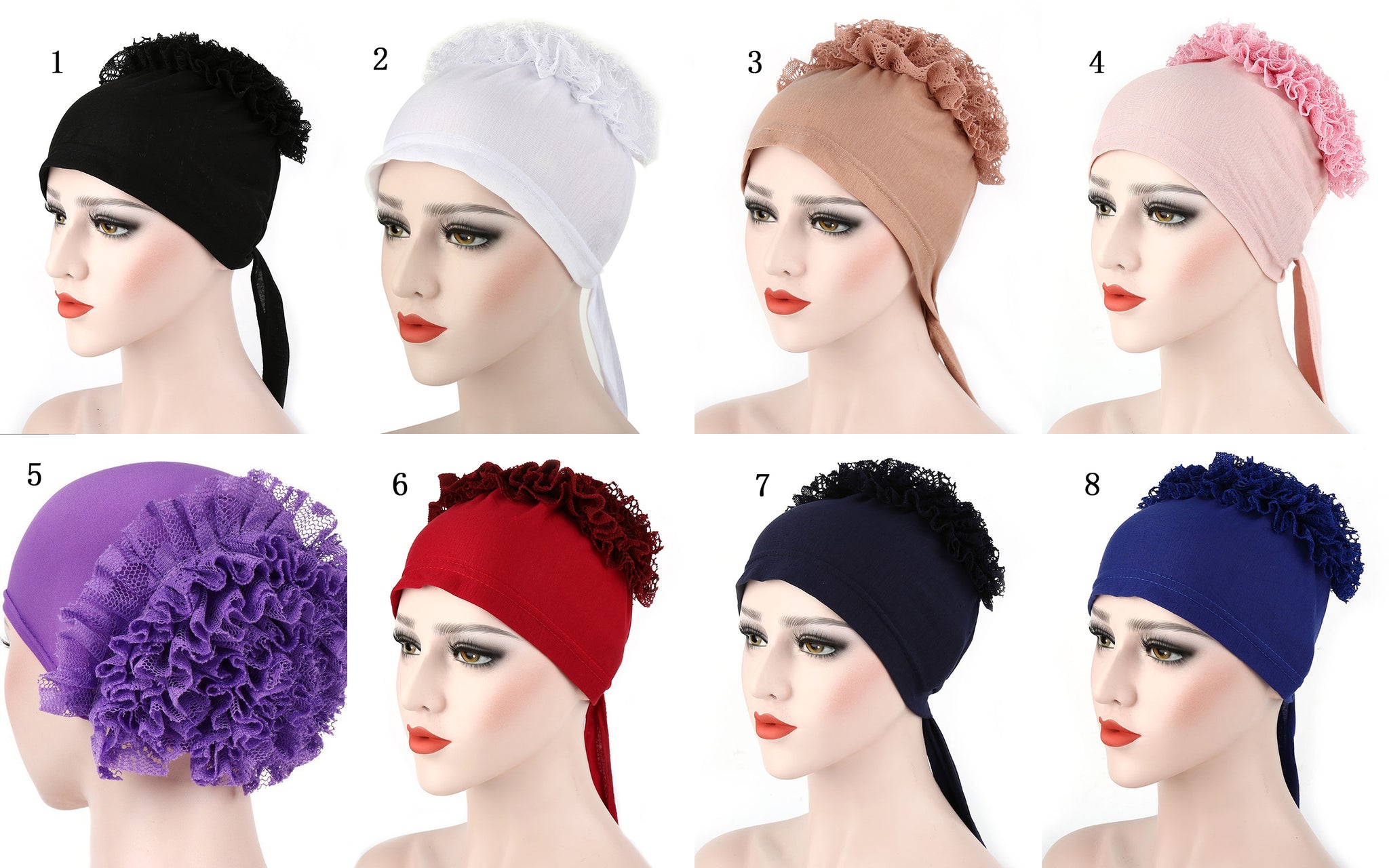 TJM-蕾丝盘花 tudung tudung plain lace flower hat turban