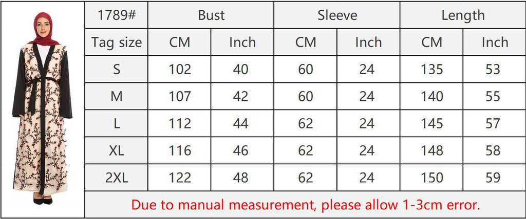 1789 Floral Embroidery Muslim Abaya Dress for Elegant Style