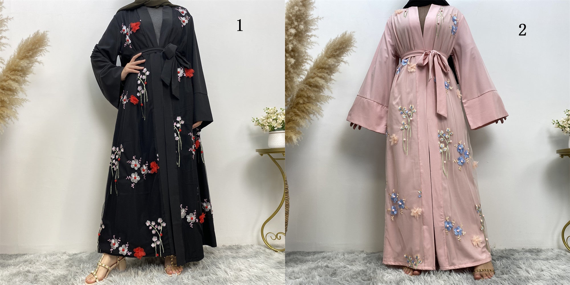 1845 Embroidered Flower Muslim Abaya Dress for Elegant Modest Fashion