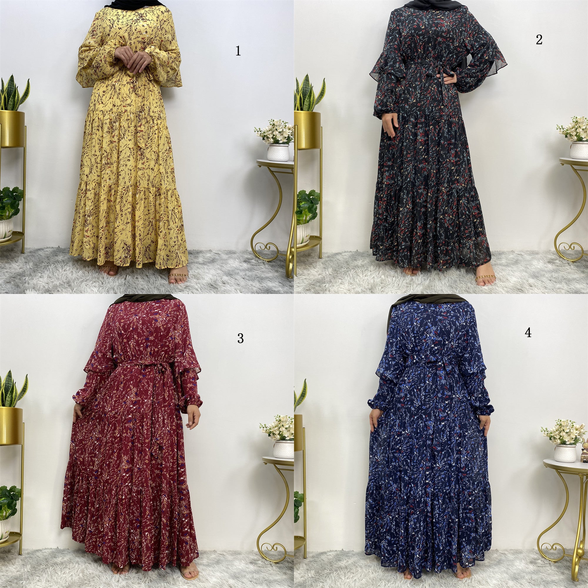 6564 chiffon printed muslim abaya dress