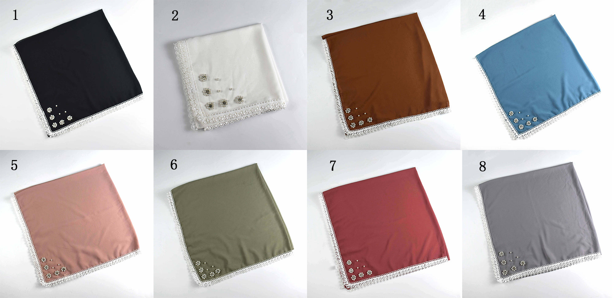 W-0098 90*90 plain pearl chiffon nail beads lace edge kerchief hijab