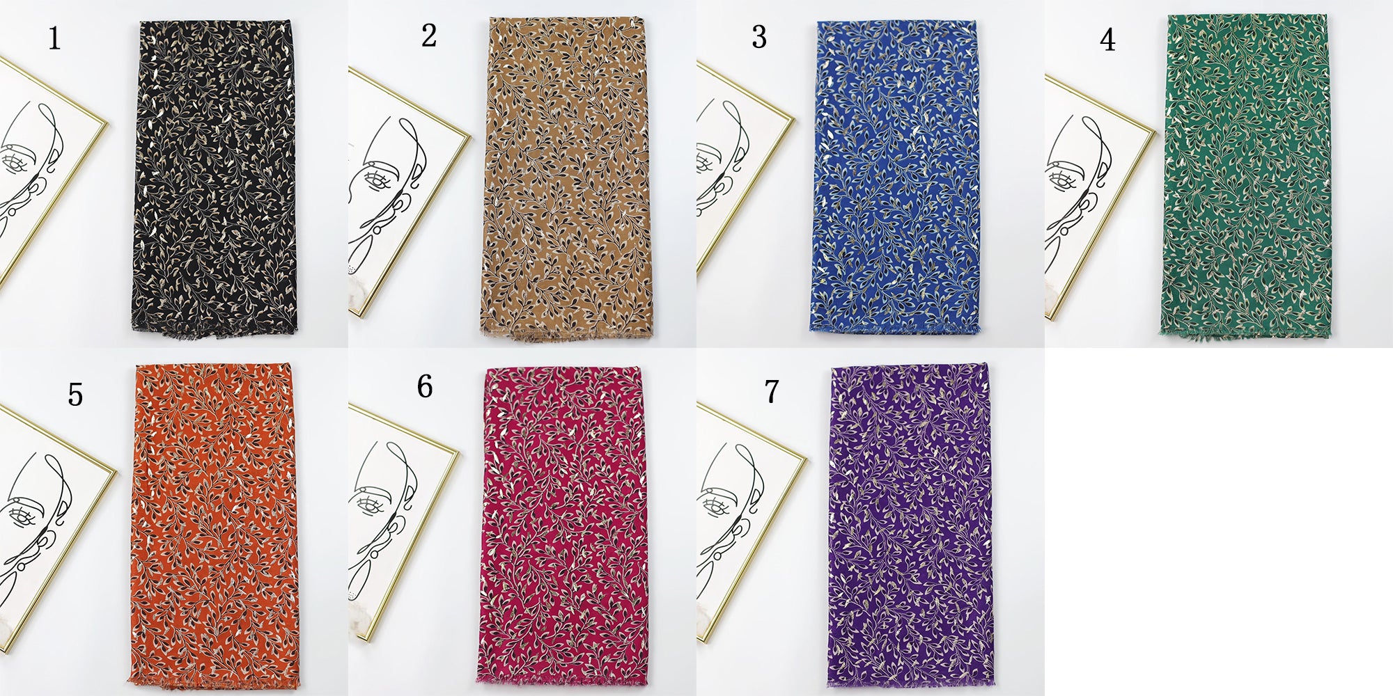 JY230605 Boston ivy printed hot stamping scarf