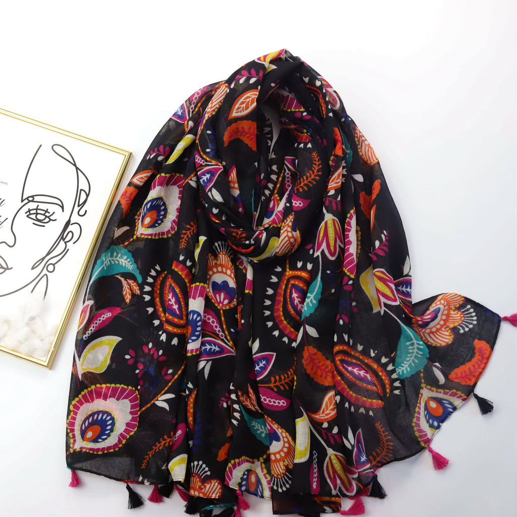 JY220619 Colorful tropical plant printed scarf