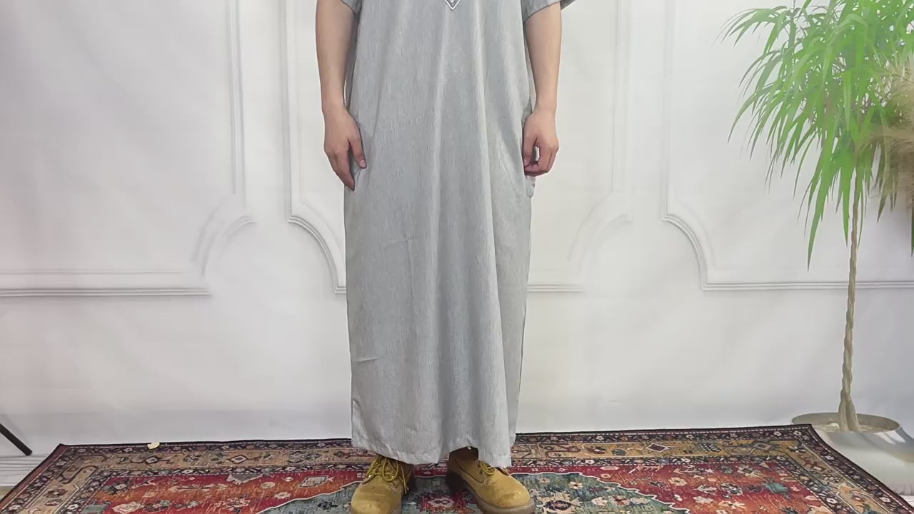FN52-34 Cross-border short-sleeved embroidered round-neck men's robe abaya