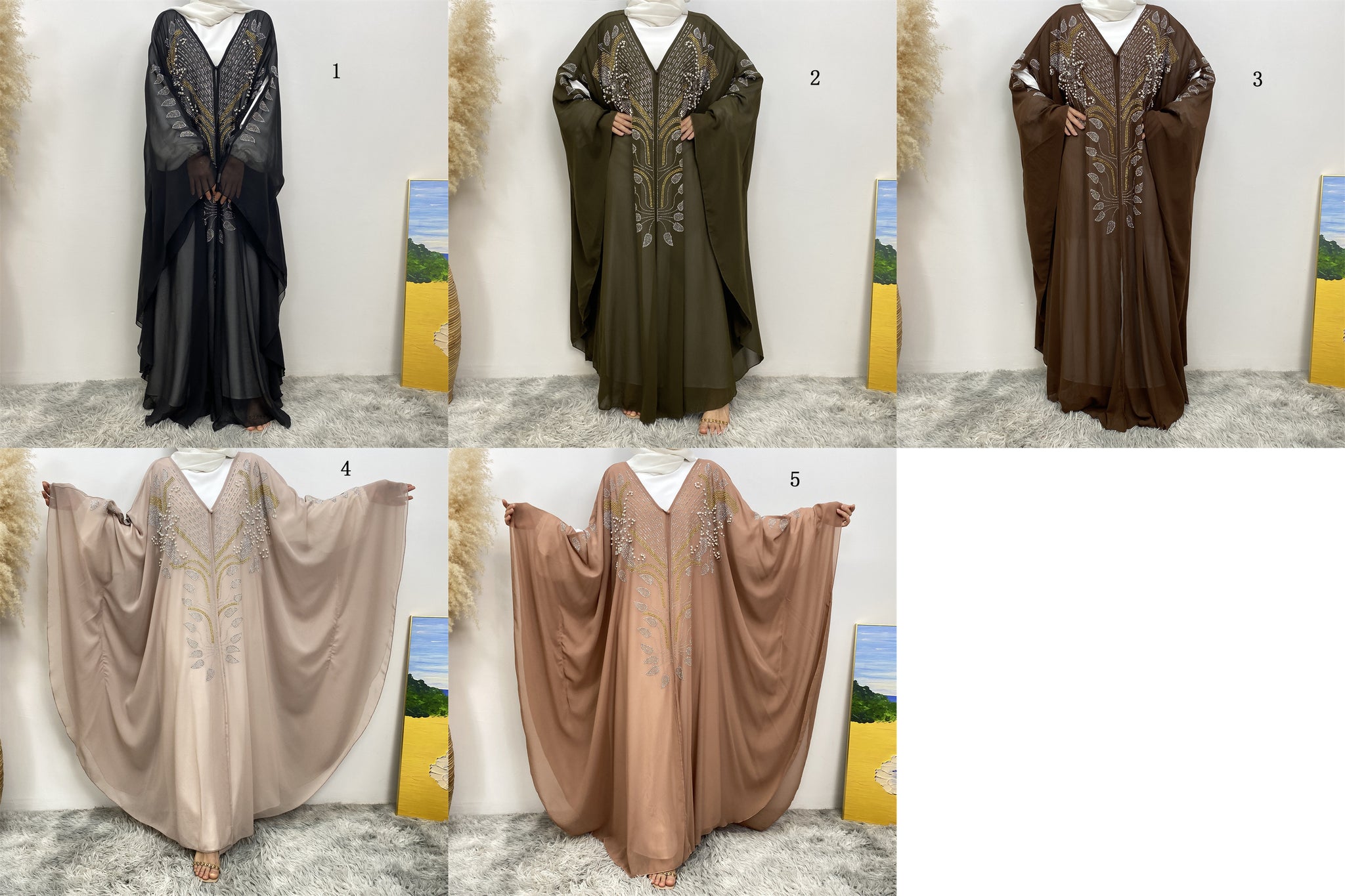 6743 Plain Stamping Rhinestone Modest Butterfly Open Abaya