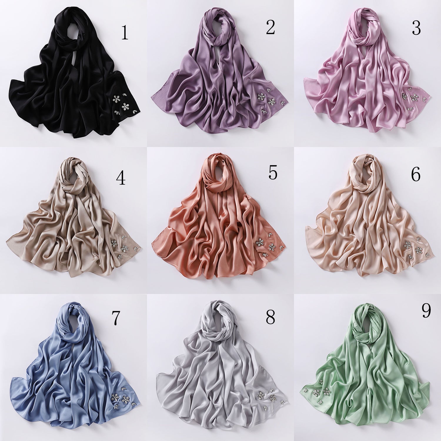 W-0048 plain chiffon Hand set diamond hijab scarf