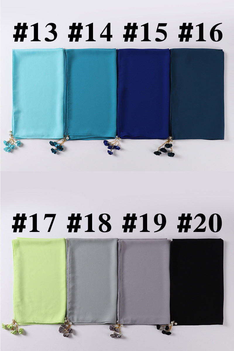 TJ025 plain pearl chiffon Accessory tassel hijab scarf