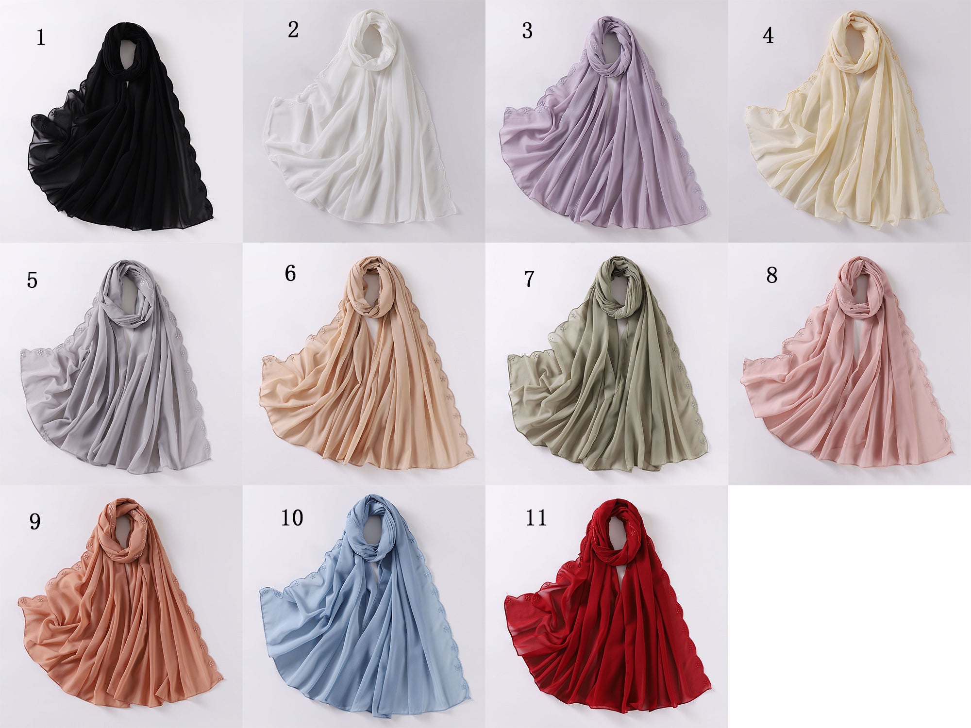 W-0005 plain pearl chiffon embroidery edge hijab scarf