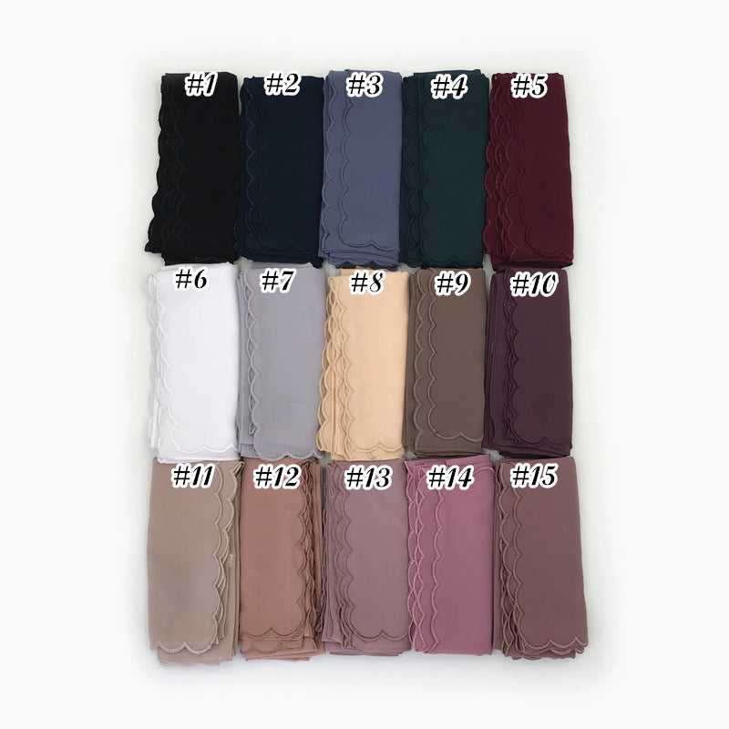WJA46 plain pearl chiffon embroidery edge hijab scarf