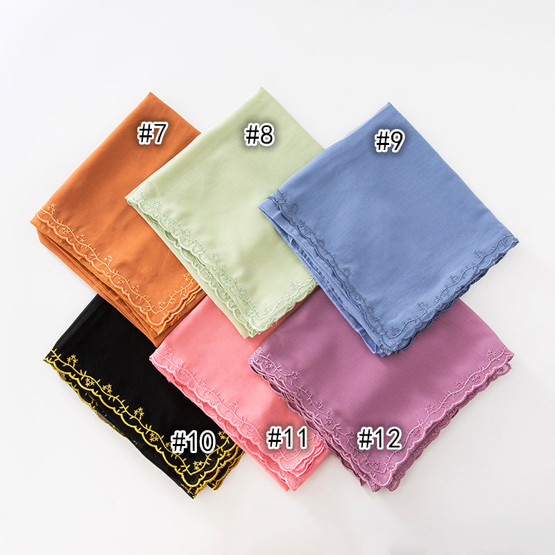WJA91 plain pearl chiffon embroidery edge hijab scarf