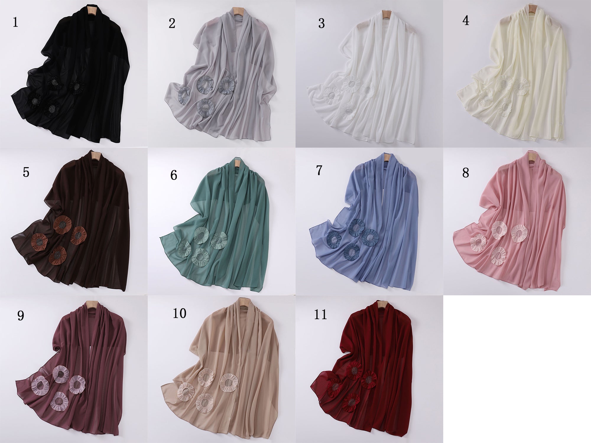 W-0107 plain pearl chiffon hot stamping diamond flower hijab scarf