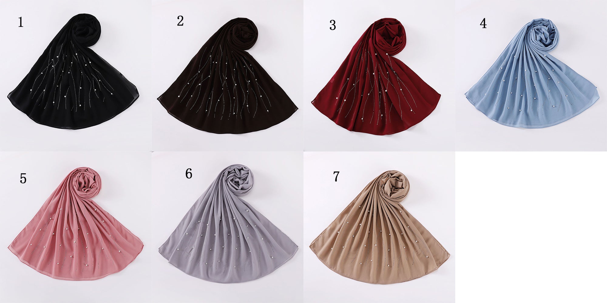 W-0045 plain pearl chiffon hot stamping nail bead hijab scarf