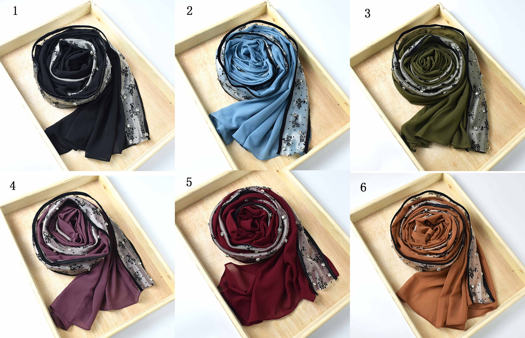 W-0099 plain pearl chiffon lace edge nail dimond hijab scarf