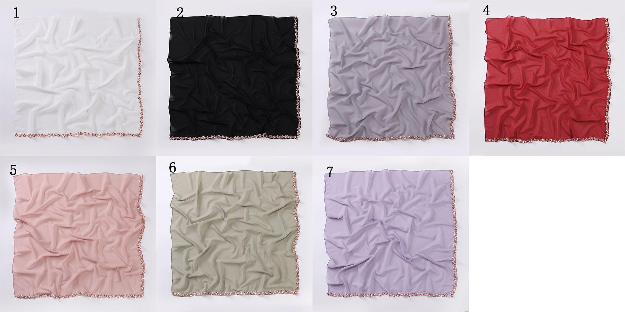 W-0110 plain pearl chiffon lace Nail bead kerchief hijab scarf