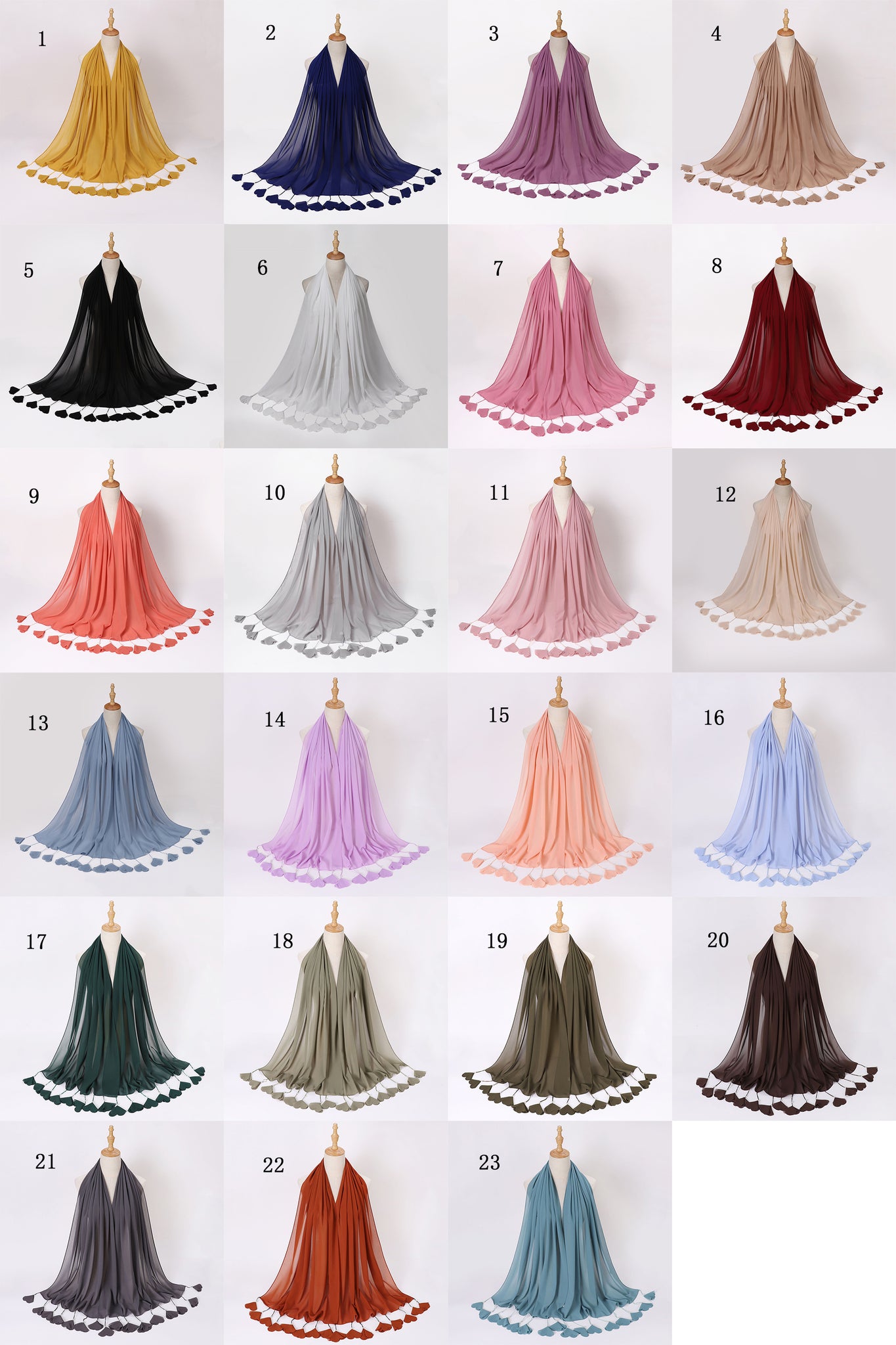 W-0063 plain pearl chiffon Love tassel hijab scarf