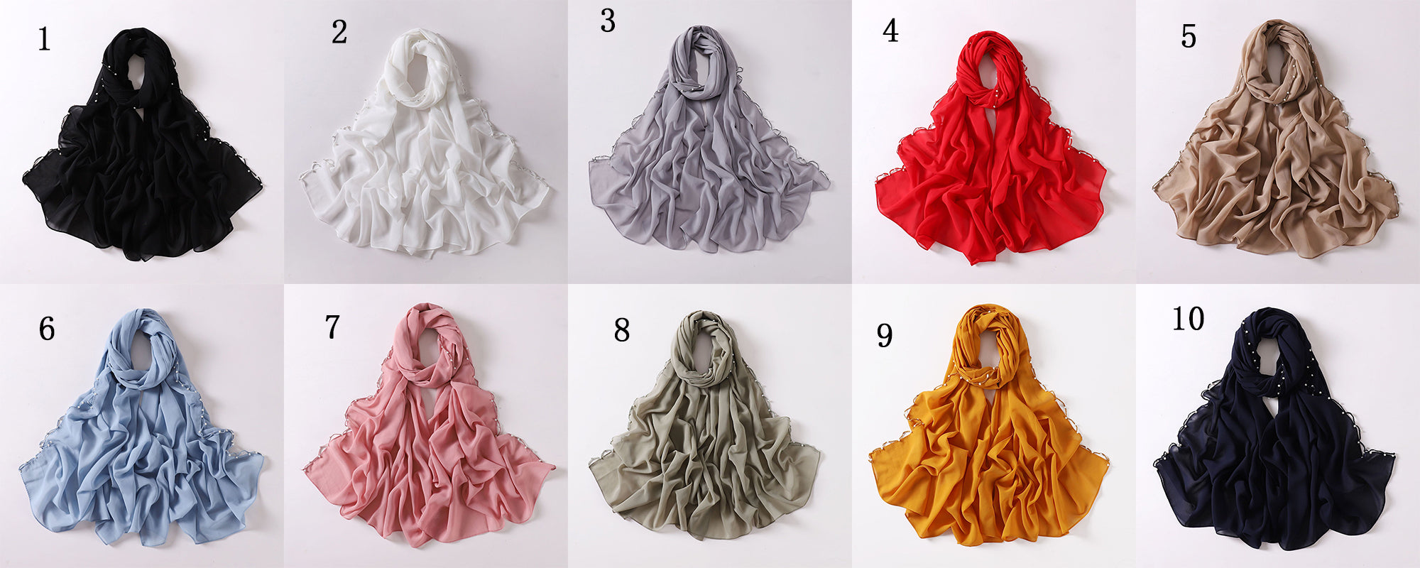 W-0082 plain pearl chiffon wavy edge Nail bead hijab scarf