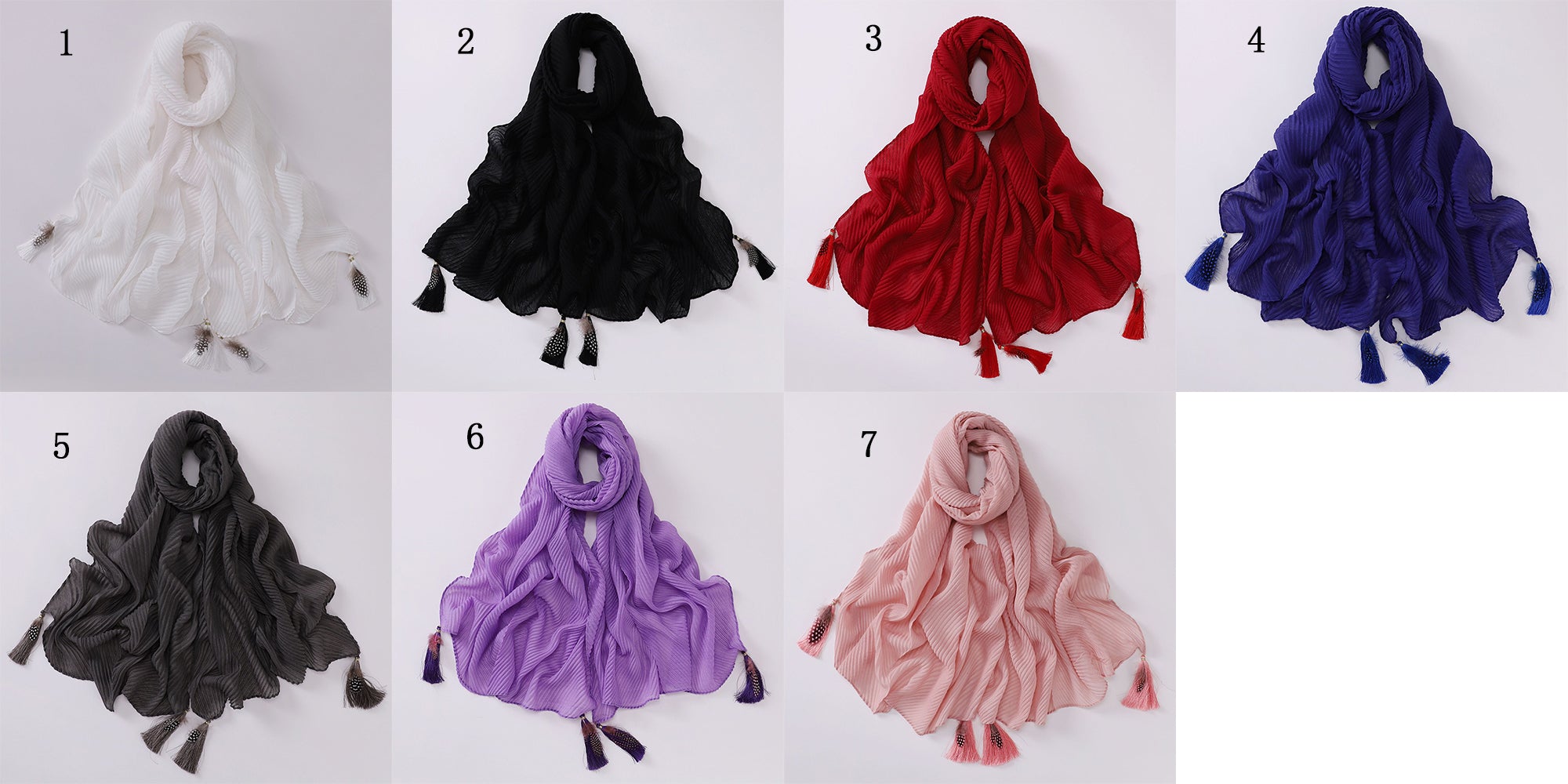 W-0112 plain TR tassel hijab scarf