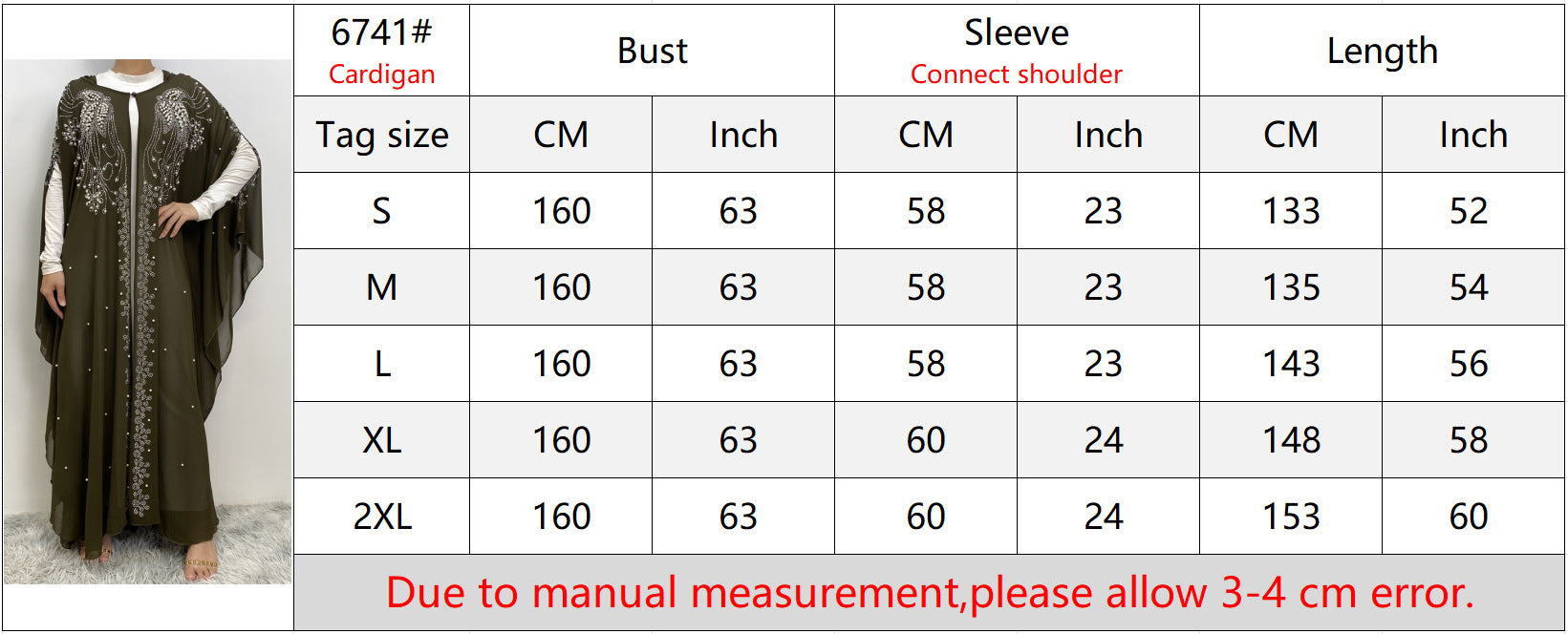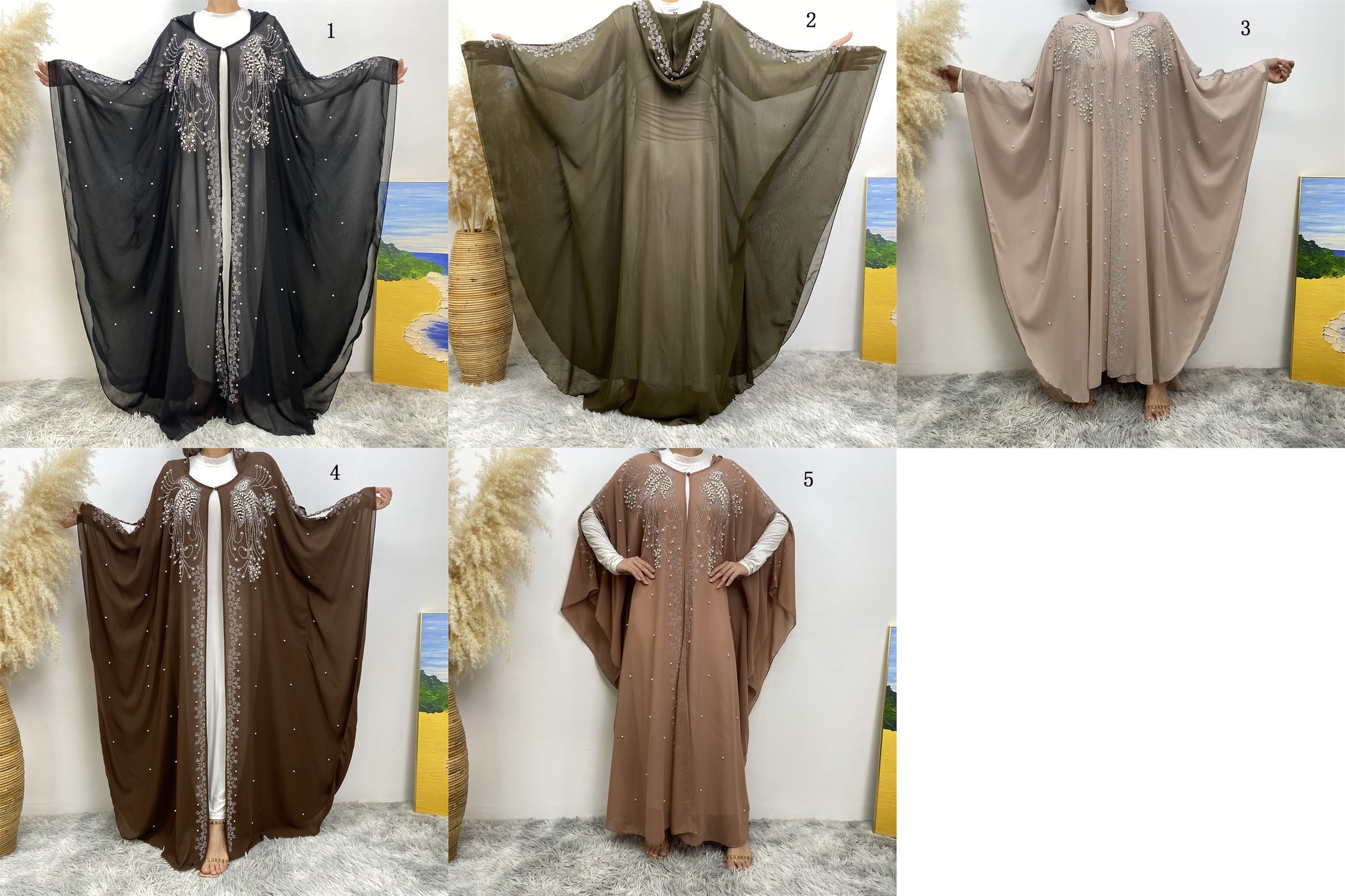 6741 Plain Stamping Rhinestone Cardigan Butterfly Sleeves Abaya