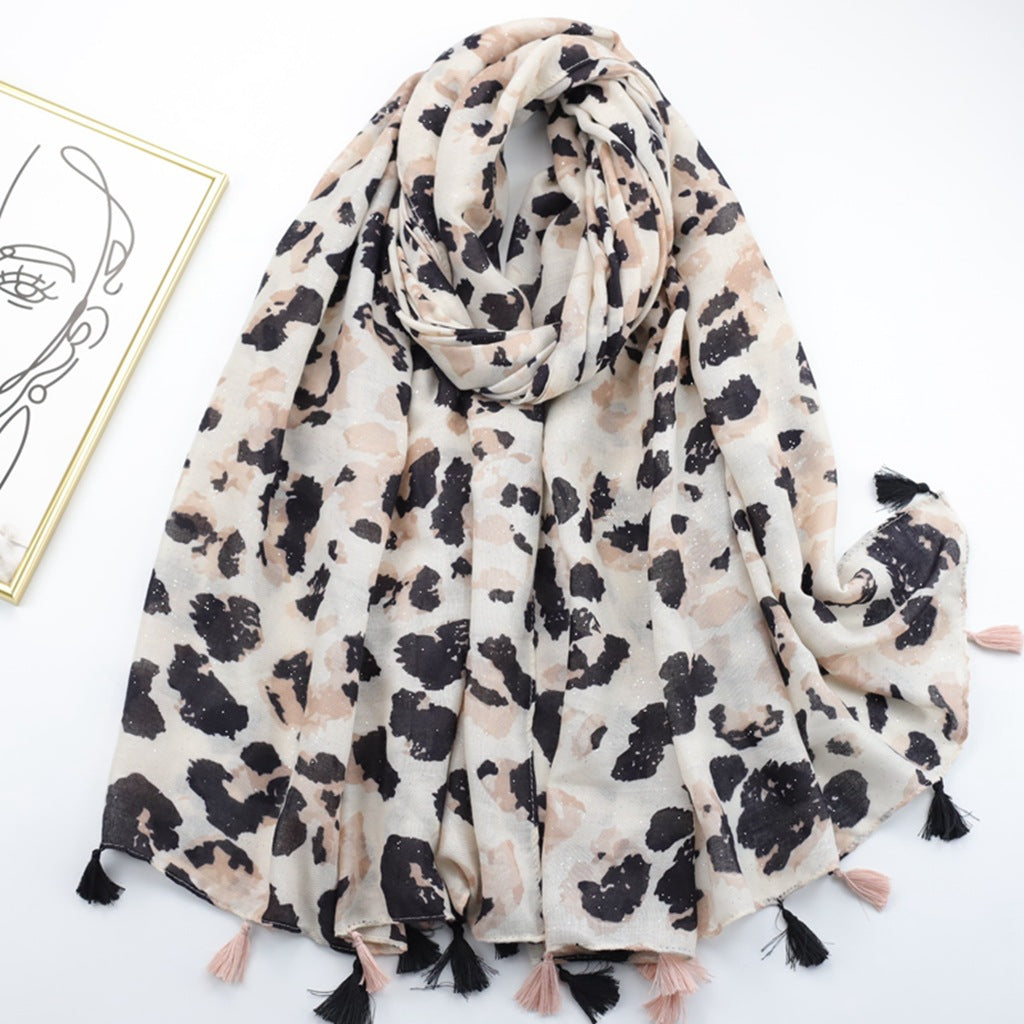 JY230245 silver stamping Leopard print printed scarf